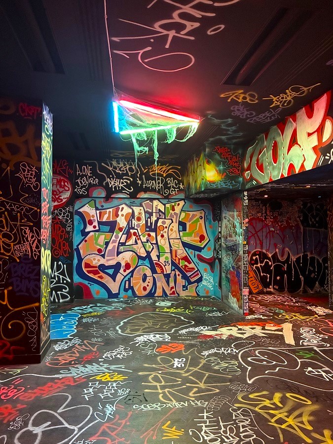 Le choix de la scénographie y fait toute la différence. La visite commence au dernier étage, là où le street art balbutiait encore, ancré dans l’underground, la transgression et l’illégalité. Un art spontané, intimement lié à la rue et à ses codes. Puis, étage après étage, la descente raconte l’évolution du mouvement : reconnaissance progressive, diversification des pratiques, explosion des formats et des esthétiques, jusqu’à un street art contemporain pleinement assumé, dialoguant avec les galeries, les institutions et le grand public. Une lecture chronologique fluide et intelligente, qui permet de comprendre comment un art marginal est devenu un langage universel.